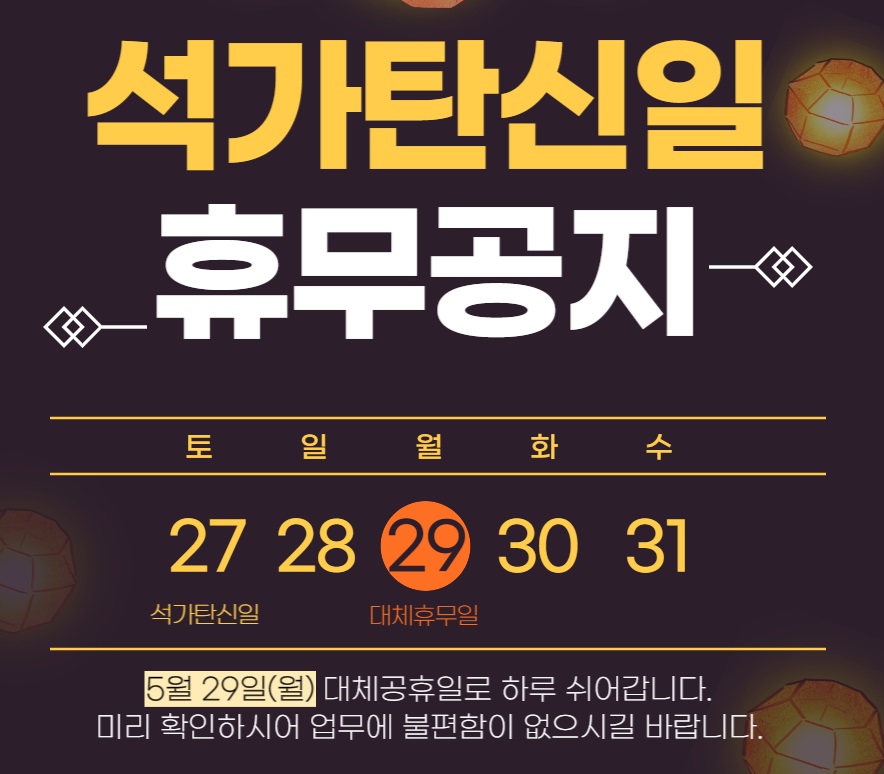 공지사항 2023년 5월 26일~29일 배송불가안내 청풍골다슬기 67 2023-05-24 목록보기 다음글 가격인상에 대한 안내입니다 이전글 2023년 2월 10일 배송불가 안내입니다