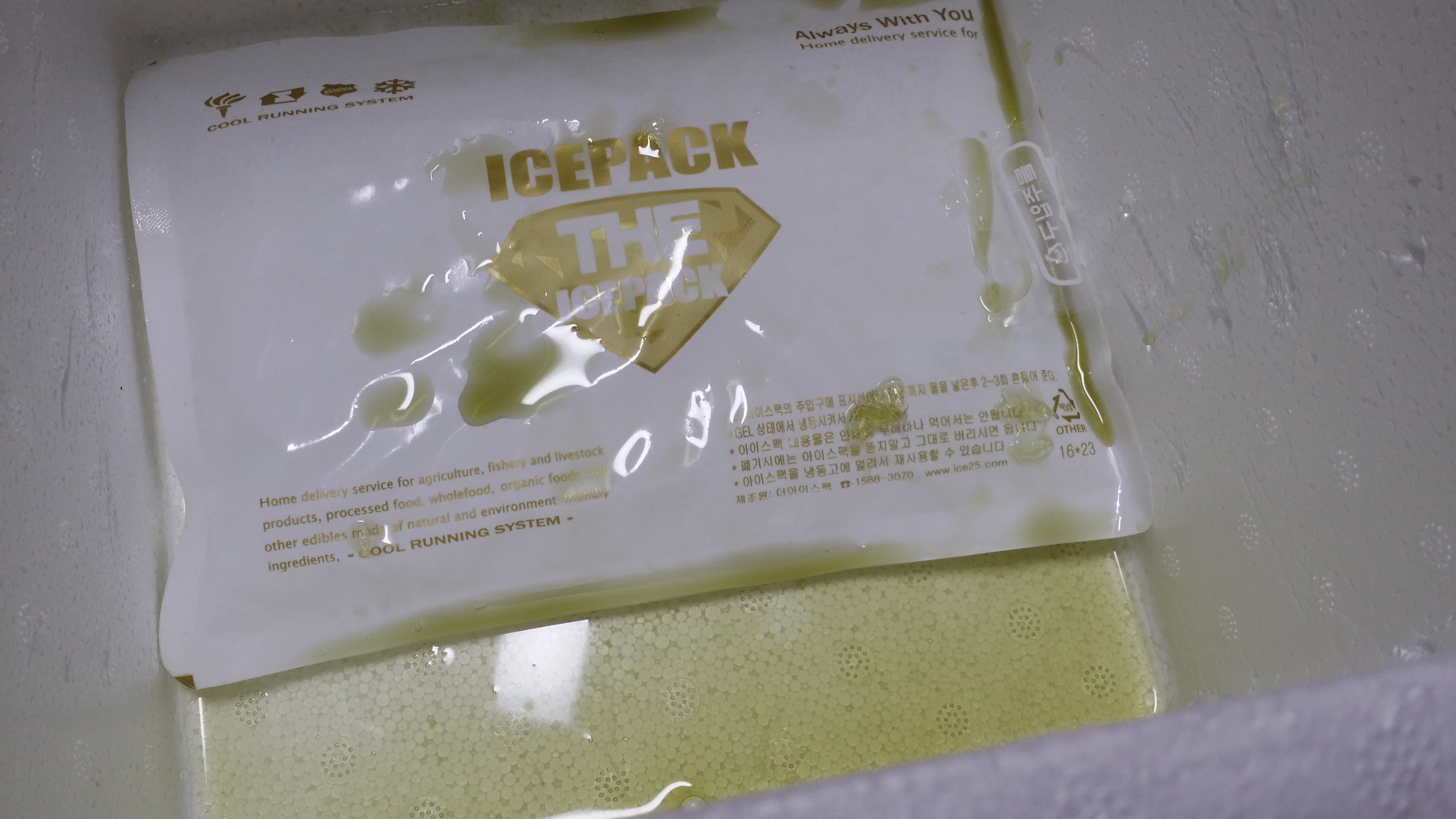 파우치 밀봉이 제대로 안됐는지 다슬기액이 흘러나왔어요