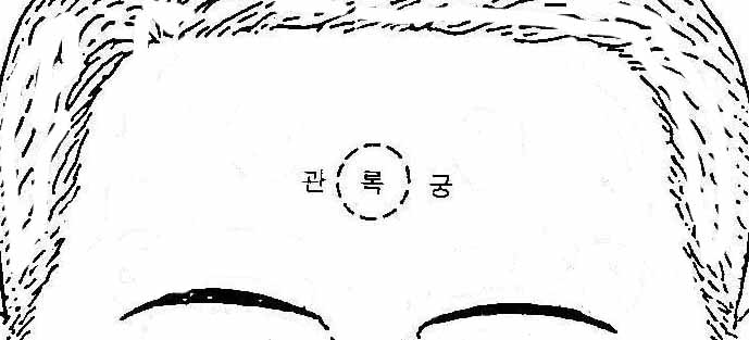 이마의 중앙에서 좌우로 1센치미터 간 위치에서 2센치 지점까지가 솟은 사람 |