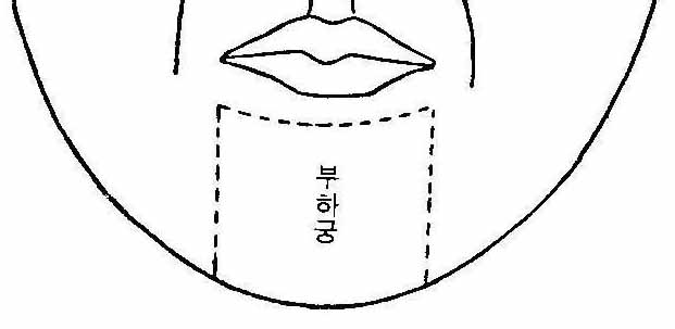 둥그렇게 두툼한 턱이 약간 앞으로 나와있는 듯 한 사람